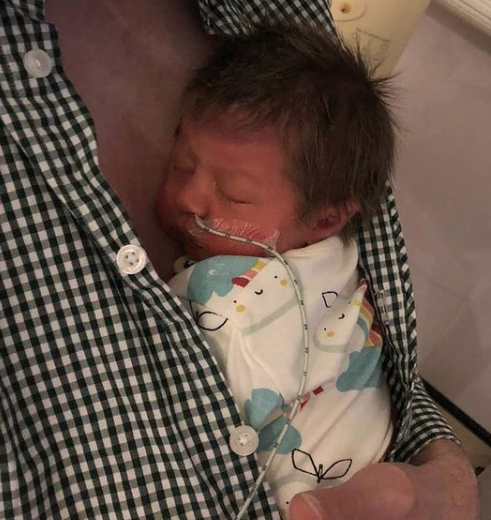 | Your first skin to skin with daddy, what a tiny dot you were x |